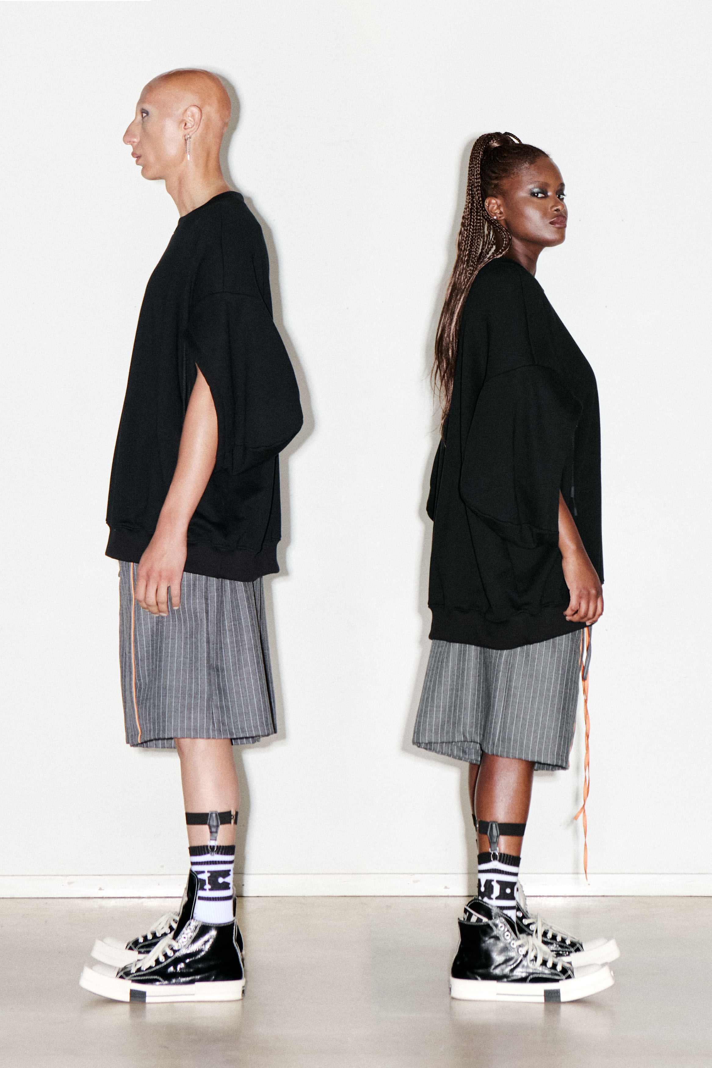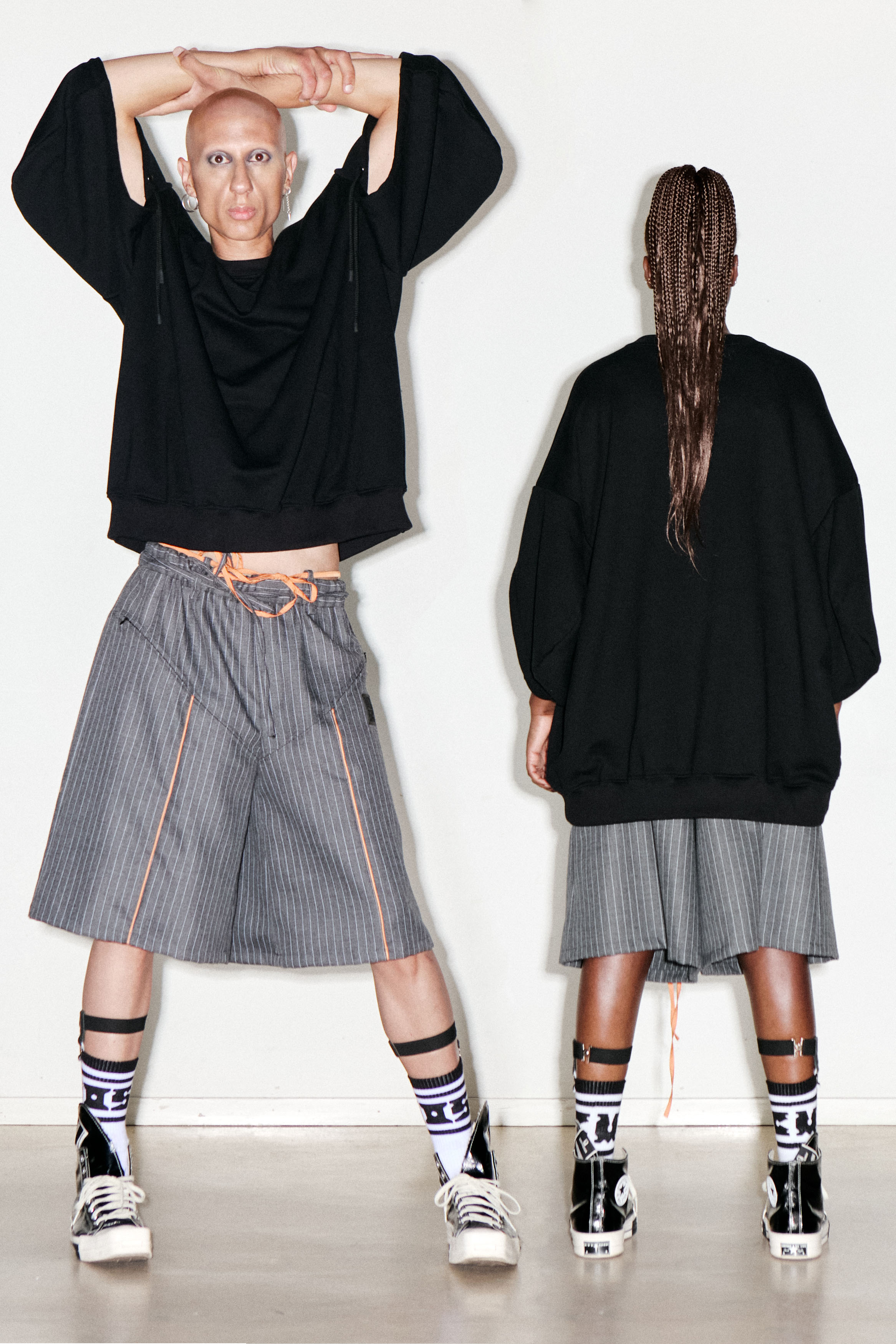 This garment has a oversize fit and is made in 100% cotton terry from deadstock. It features a crewneck with rib and double hoods to be worn as sleeves.