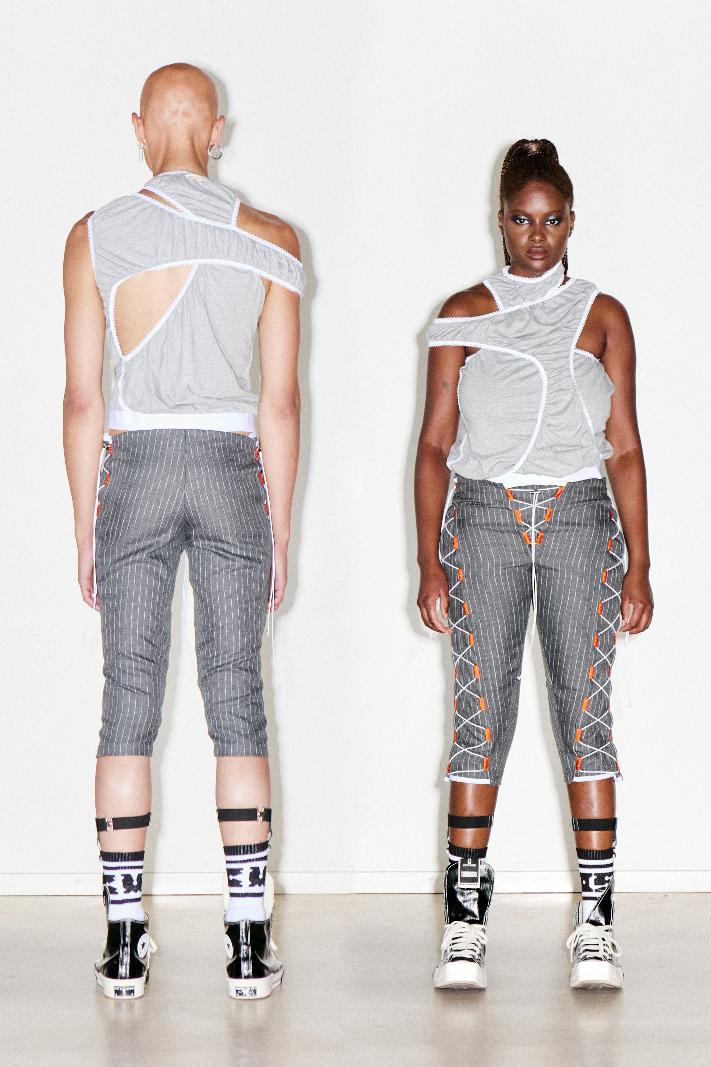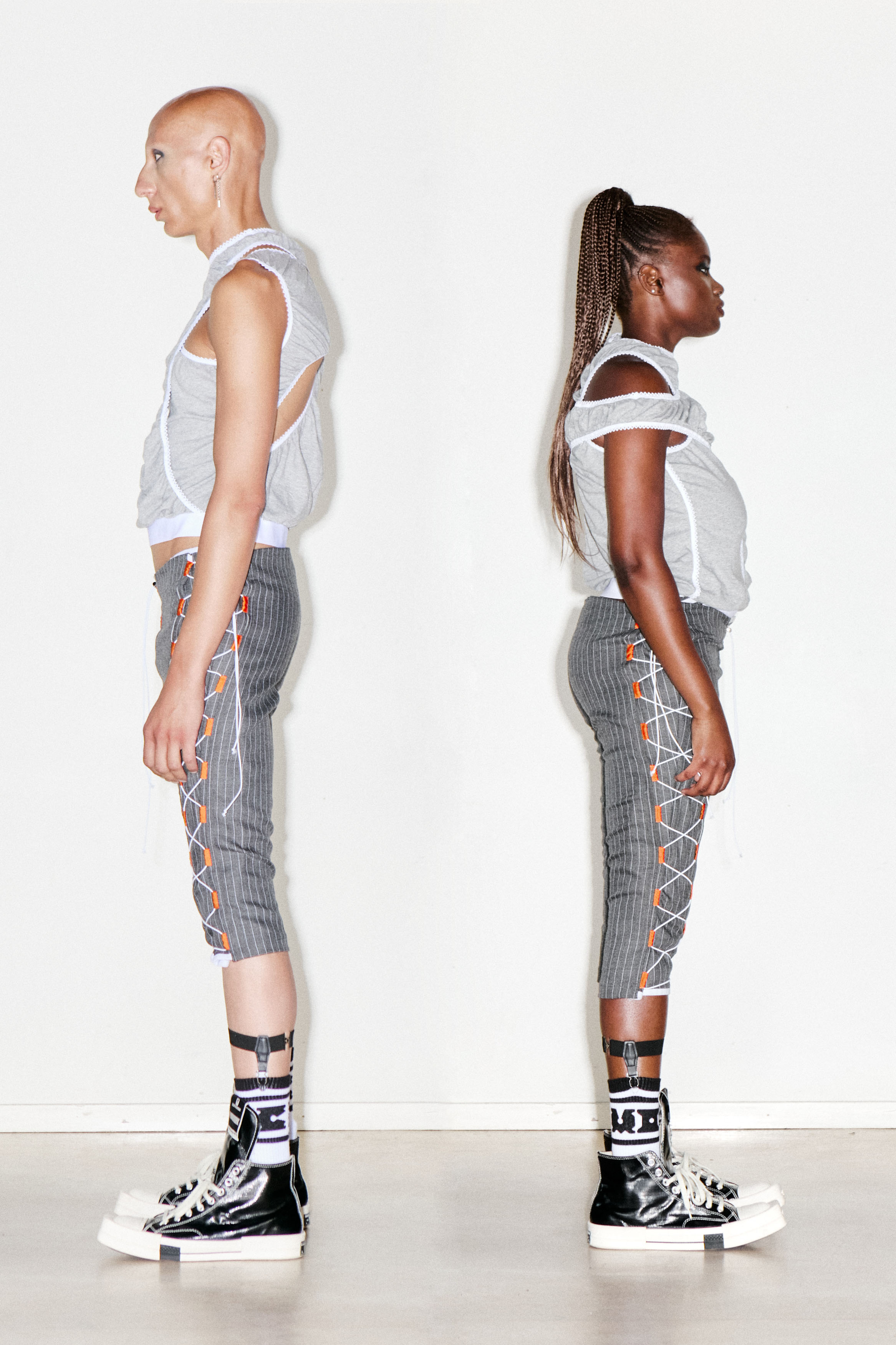 This garment is made in a perforated 100% wool from deadstock. The garment has drawstrings down both legs making it adjustable.