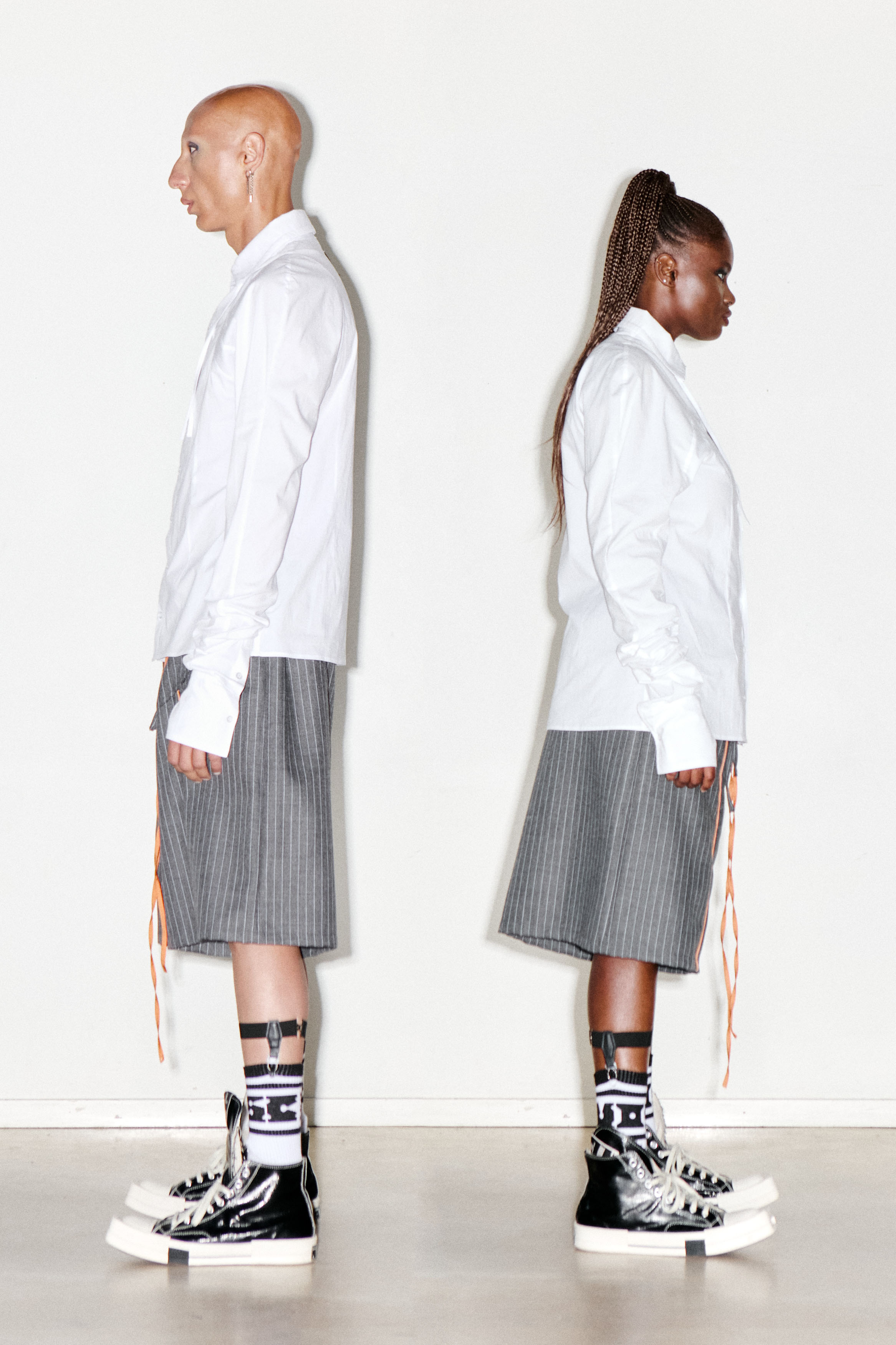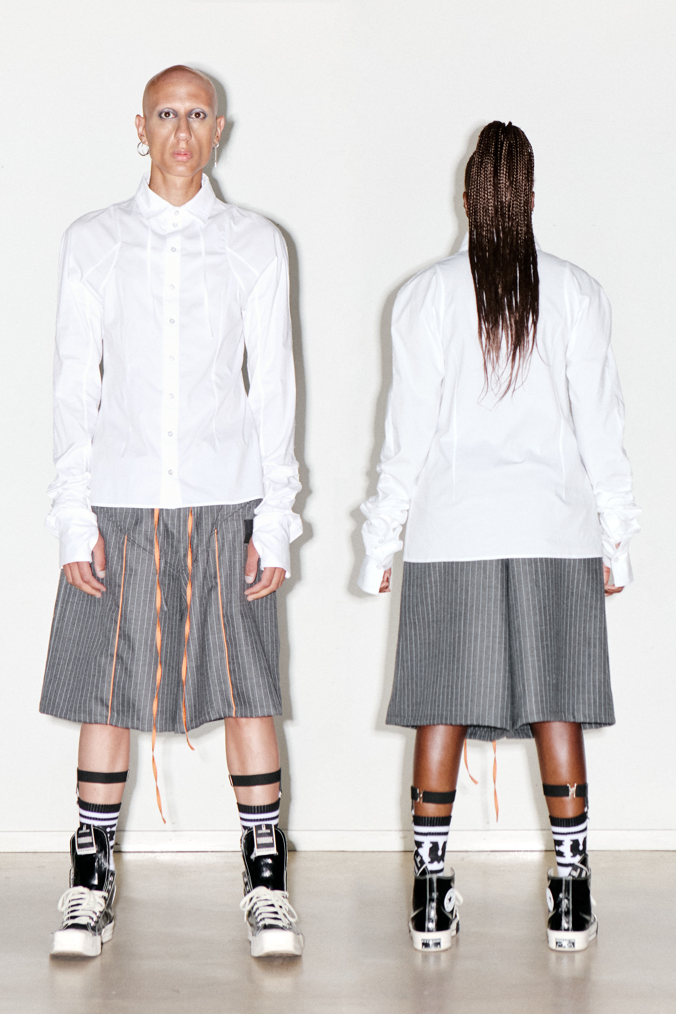 Pouria is 189 and wearing a size M. Siginey is 172 and wearing a size M.