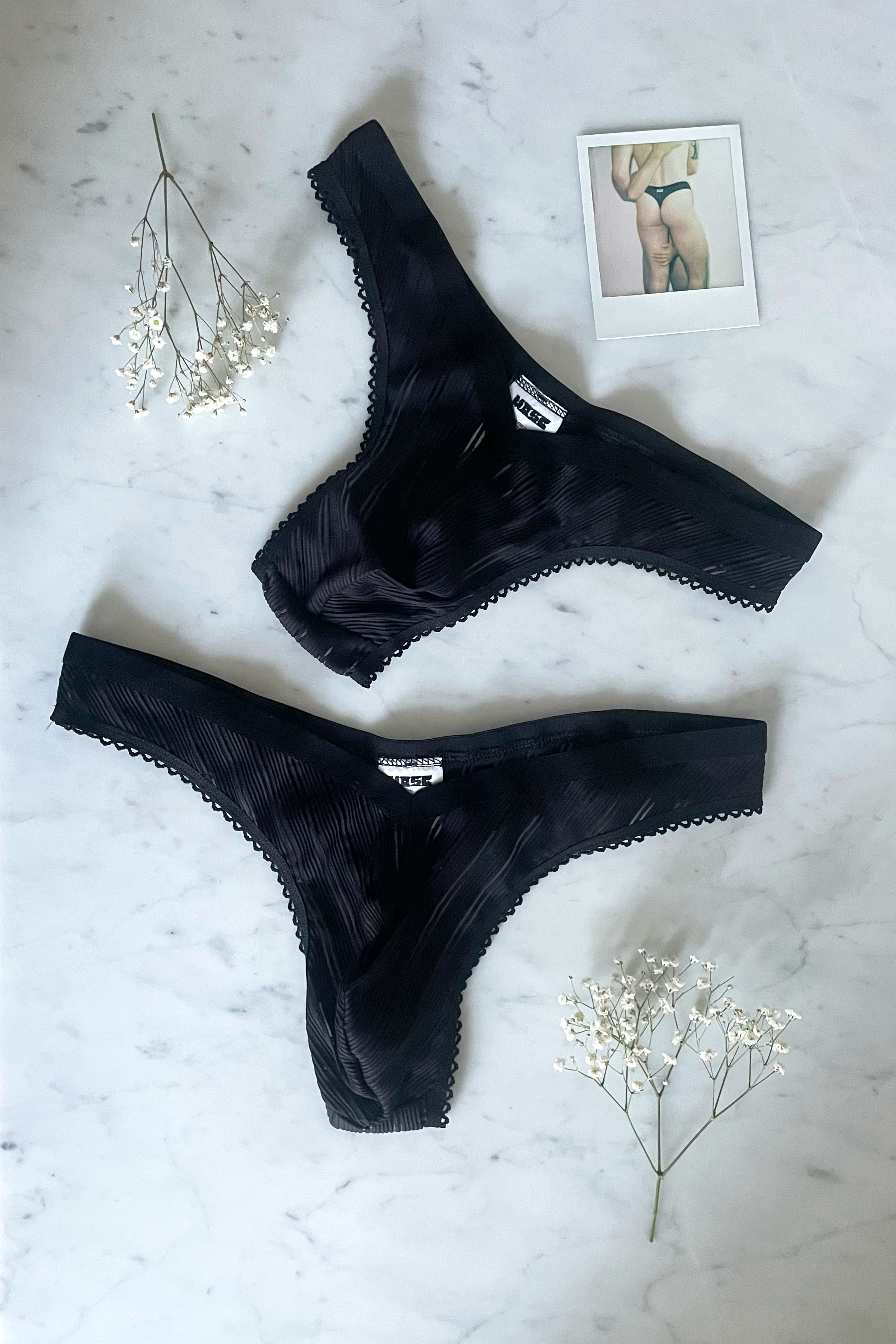 These thongs has a deep V cut at front and sits high up on your hips. Call it brazilian if you want, we call it dick-V shaped.