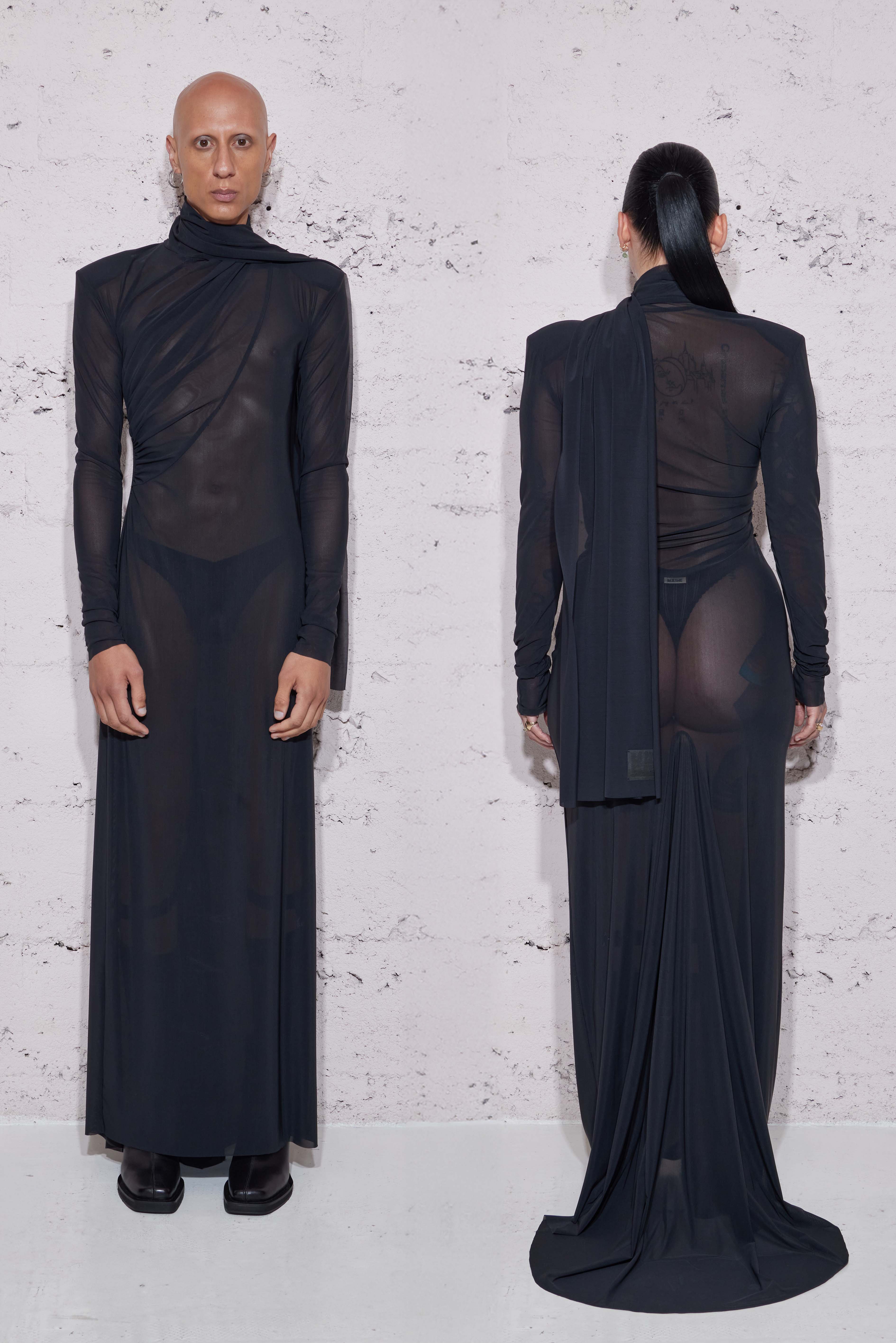 This garment is adjustable due to drawstrings all over garment. It’s made of 100% wool from deadstock.