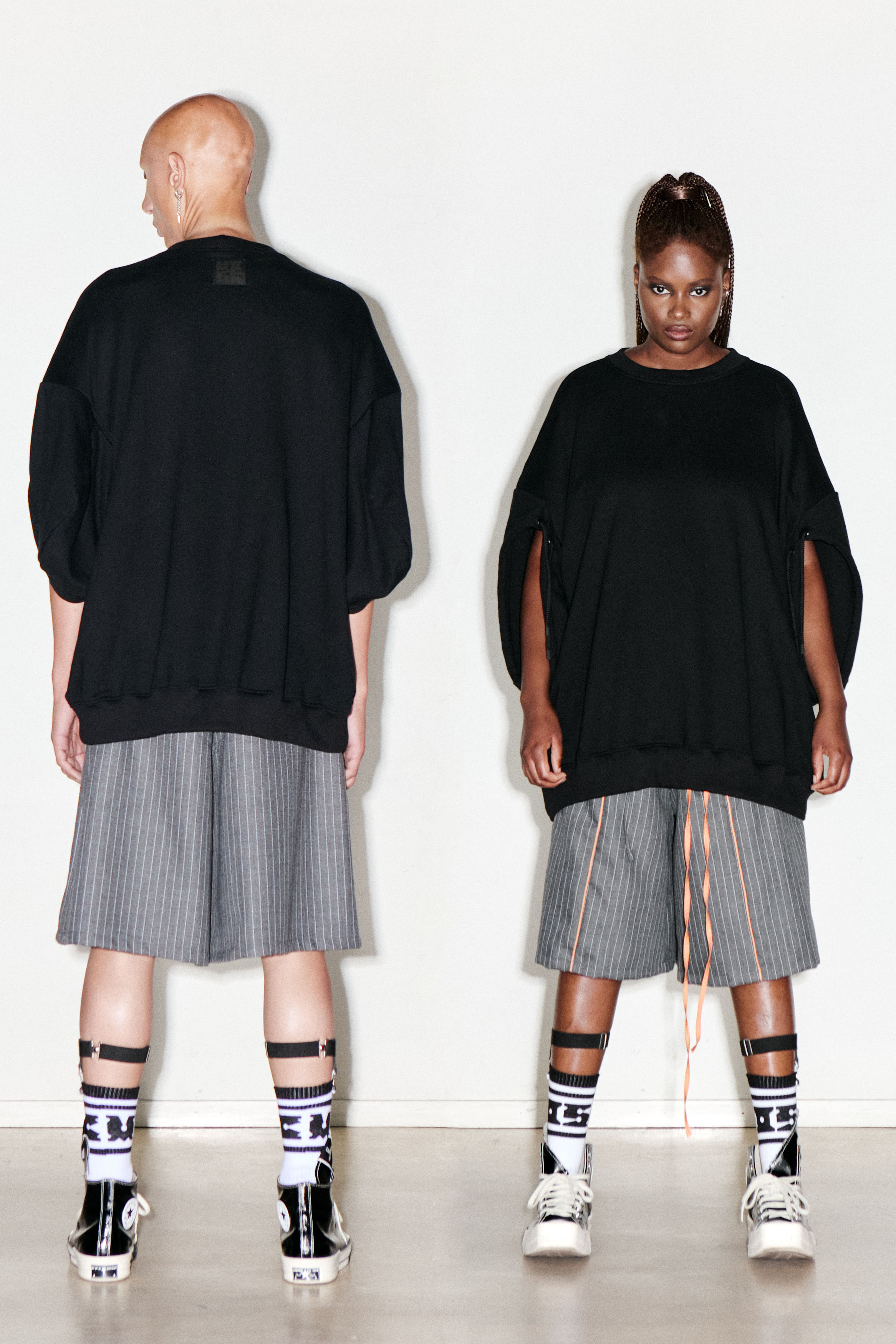 Pouria is 189 and wearing a size M. Siginey is 172 and wearing a size M.