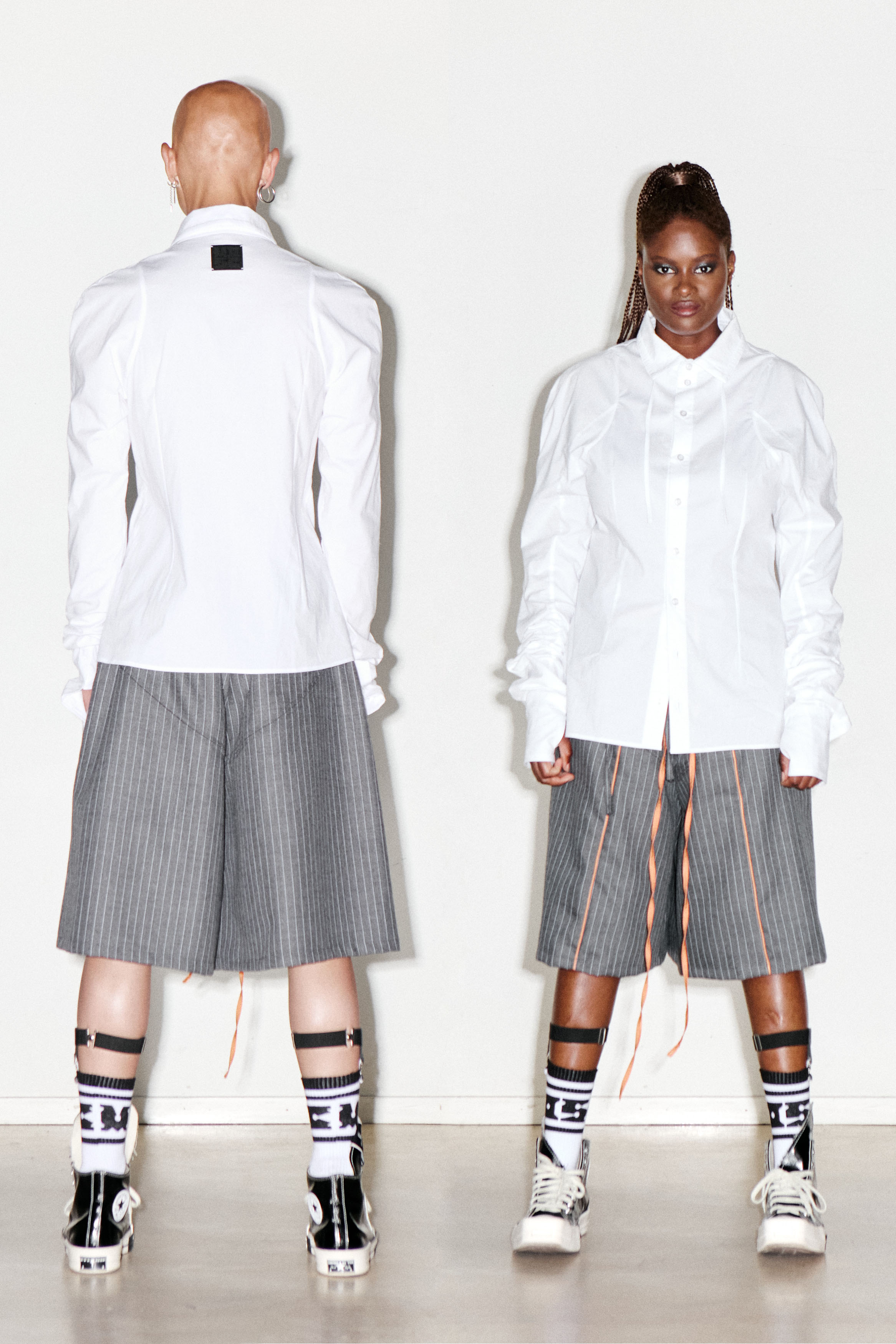 Pouria is 189 and wearing a size M. Siginey is 172 and wearing a size M.